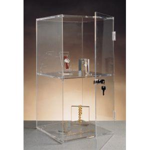 A counter showcase constructed in 5mm clear acrylic with extra strong 8mm shelves. Supplied with a good quality security lock, discreet steel fixings and virtually unbreakable hinges. One pre-fixed shelf.