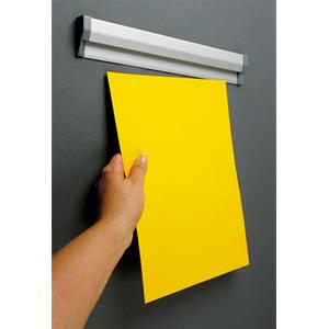 Silver anodized aluminium sign holder for hanging posters, notes or pictures without pins or magnets. Wall mount with screw and wall plugs or apply anywhere with double sided tape.