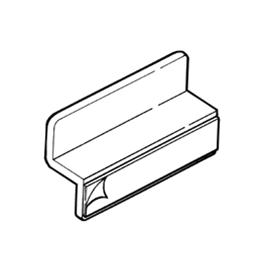 White plastic bracket with adhesive front. Slots into slatwall for mounting sign.