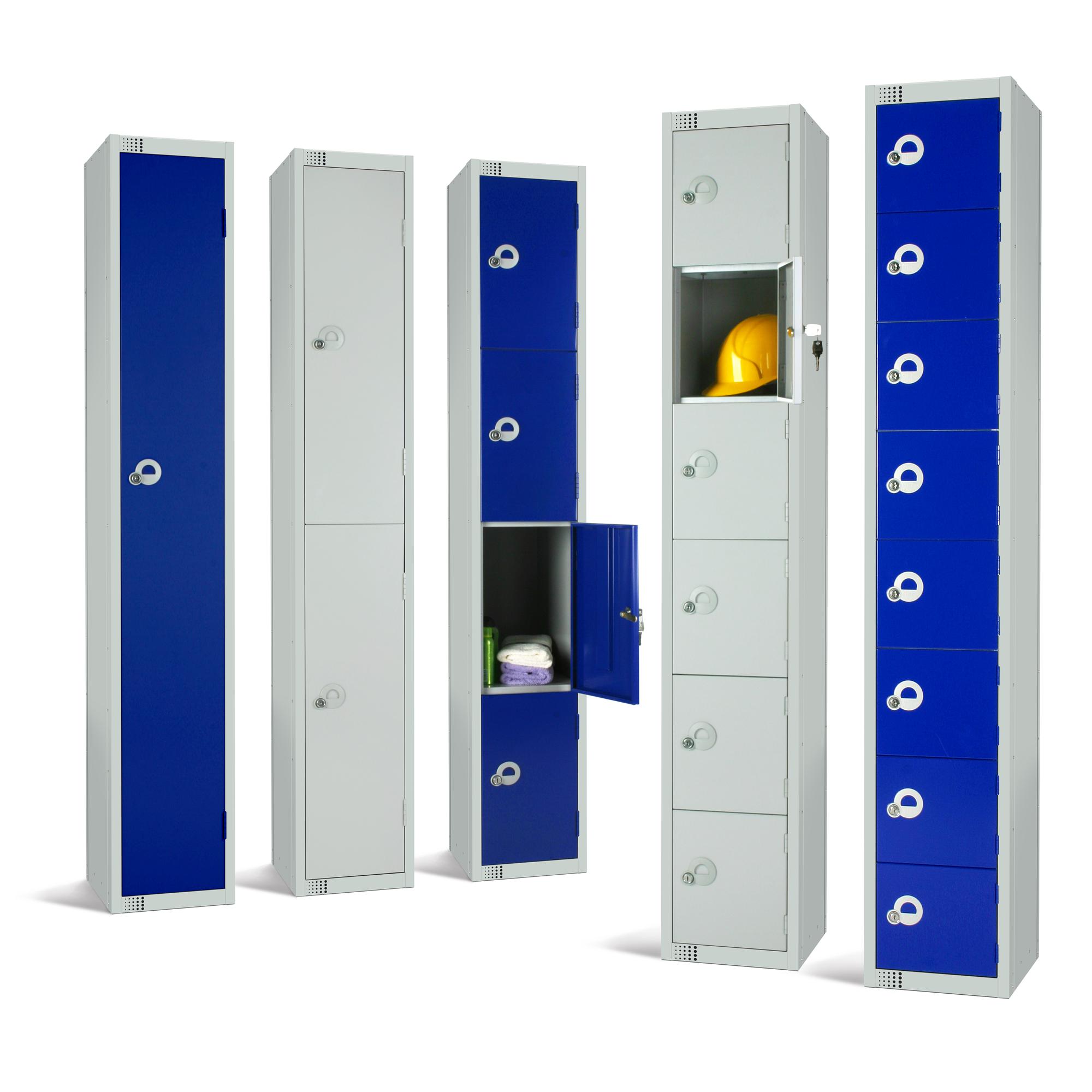Steel locker with full steel door strengthener. This three door locker comes in a choice of 7 colour options.