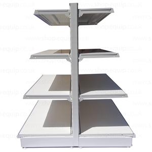 This double-sided shelved gondola bay 1410mm high x 1250mm wide Eden starter bay with 370mm Deep Base shelf, and 3 x 300mm shelves above the base shelf.