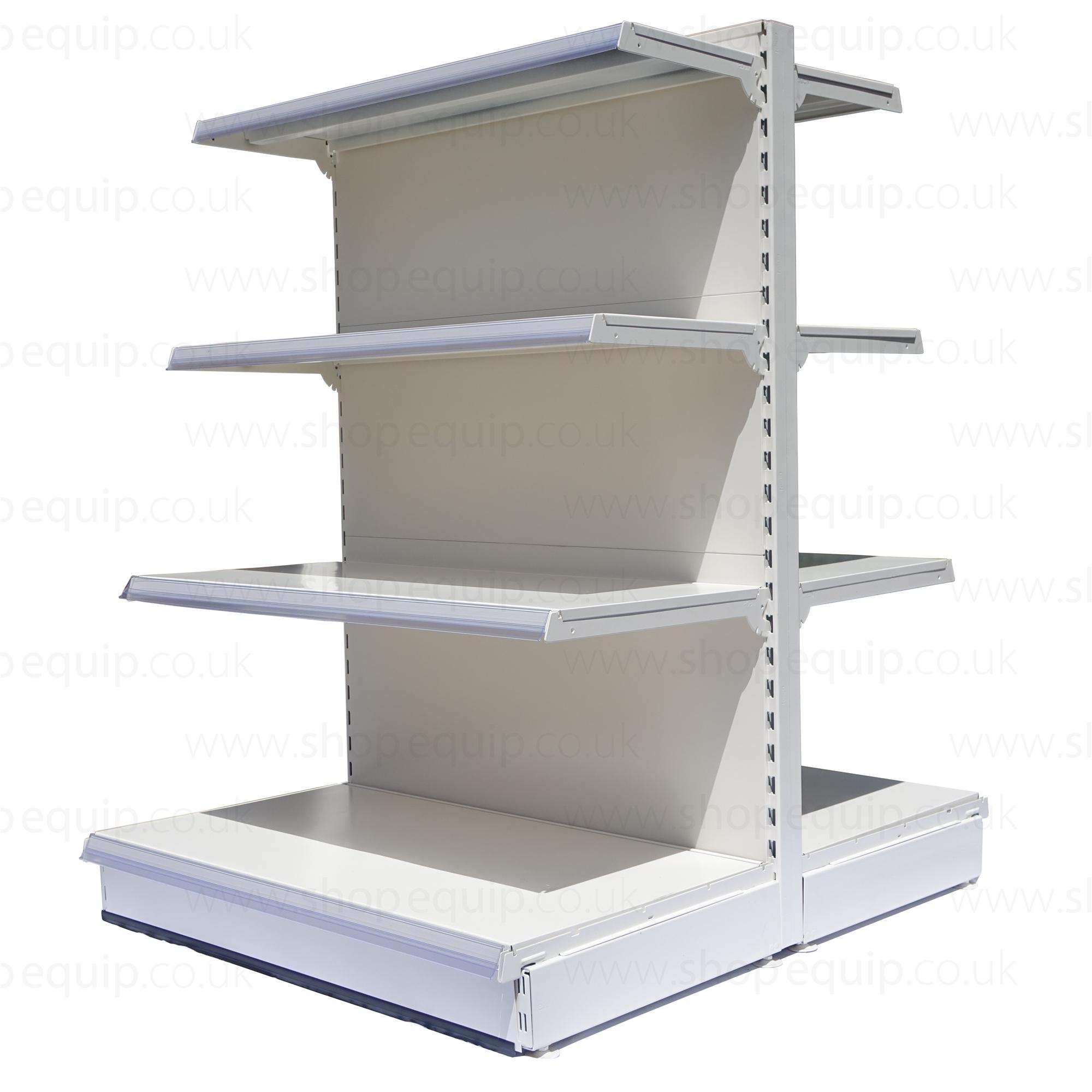 This double-sided shelved gondola bay 1410mm high x 665mm wide Eden starter bay with 470mm Deep Base shelf, and 3 x 370mm shelves above the base shelf.
