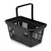 High quality plastic basket with a lockable (upright) one piece handle featuring a comfort grip. Reinforced Rim and Base for durability and 85% nest when empty.